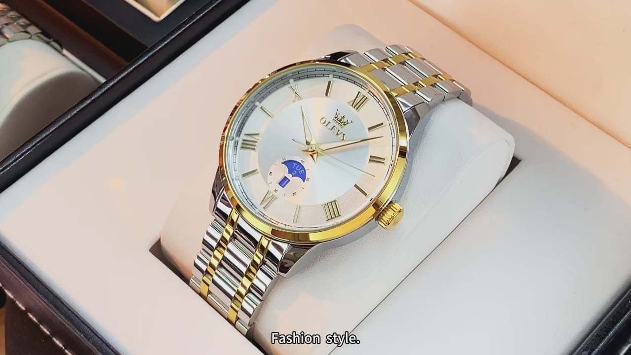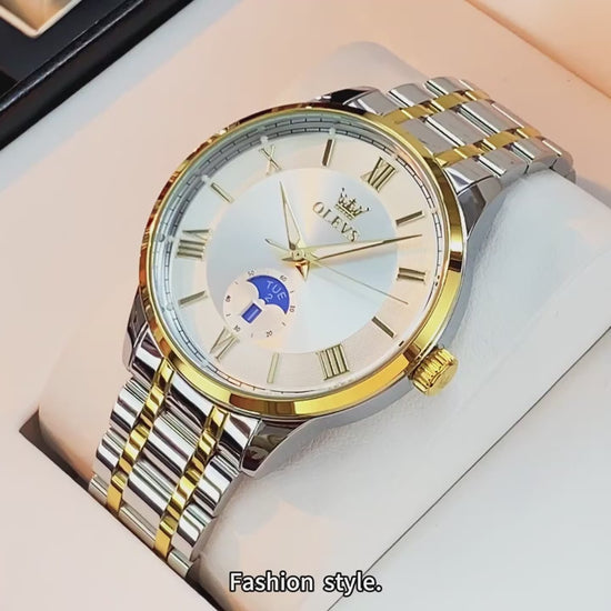 The OLEVS 3638 Mens Watch blends precision and sophistication with its original quartz movement, ensuring reliable timekeeping. Crafted from durable stainless steel, this watch is waterproof and designed for everyday wear. Its large dial features luminous hands and markers for easy readability in low light, while day and date functions keep you informed at a glance. Combining luxury aesthetics with practical features, it’s an excellent choice for men who demand both style and functionality.
