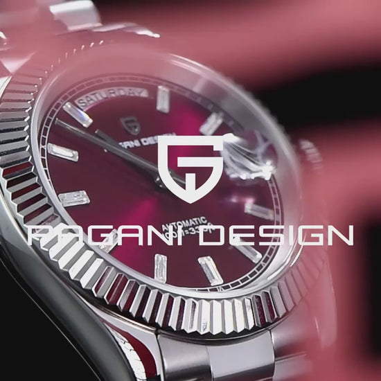 The PAGANI DESIGN DD40 men’s watch features a sophisticated rose gold finish paired with a reliable Japanese NH36A automatic movement, ensuring accurate timekeeping without battery reliance. Constructed from stainless steel and designed to be waterproof, this mechanical wristwatch combines durability with elegance. Its refined aesthetic suits formal occasions while maintaining robust performance for daily wear, making it a versatile choice for discerning watch enthusiasts.